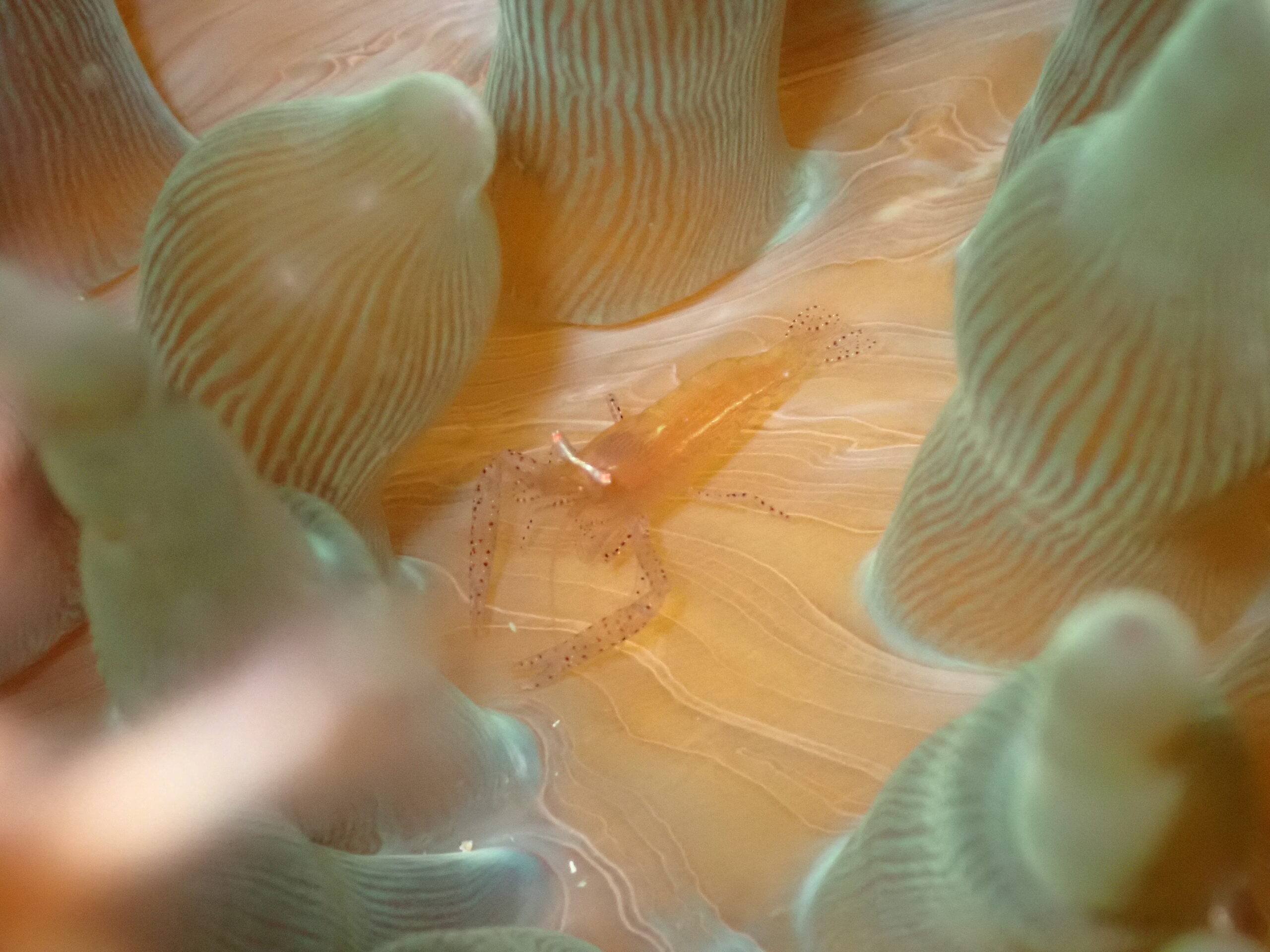 浅いところでは、ヒトデヤドリエビにカザリイソギンチャクエビなどの甲殻類!